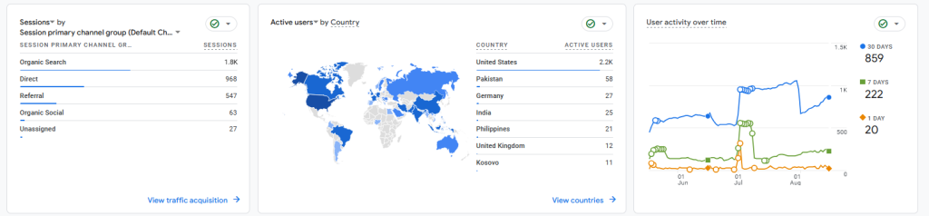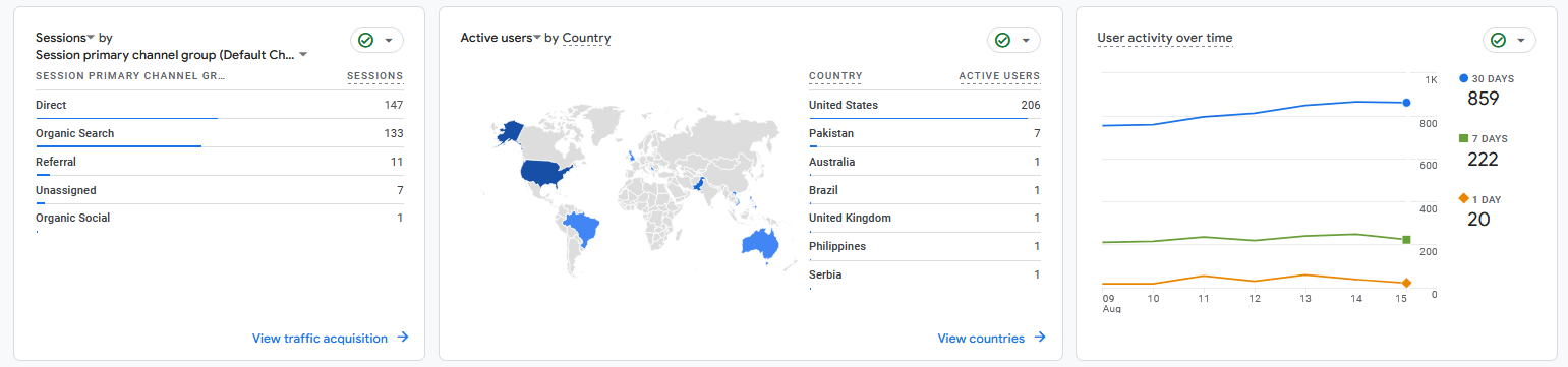 Top Channel: Paid search and direct traffic are next, followed by organic search (135 users). Although organic performance is strong, user retention could use some work.