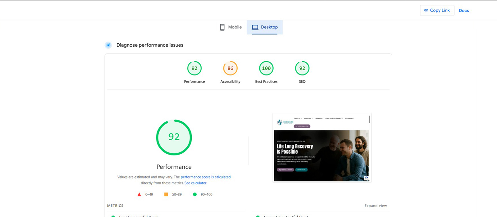The mobile layout is clean, with clear and concise text that’s easy to read on smaller screens. The call-to-action buttons, “Get Help Today” and “Learn More,” are prominent and easy to tap, improving user interaction. High-quality images are used effectively alongside relevant content, providing a visually appealing and professional experience for users.