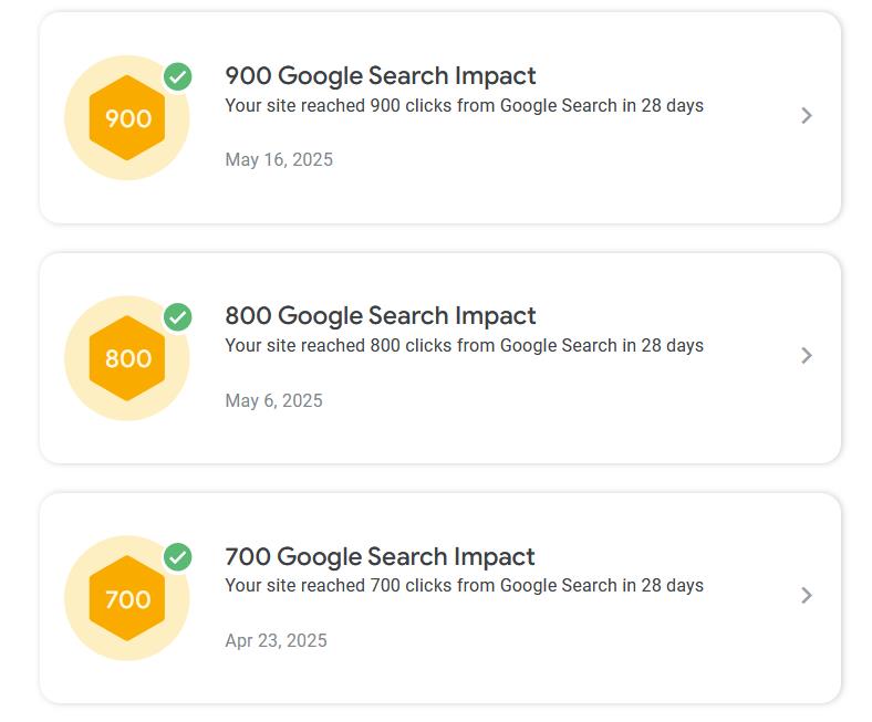 We are pleased to report steady improvement in the performance of our website in Google Search. We have accomplished significant milestones in just a few weeks: