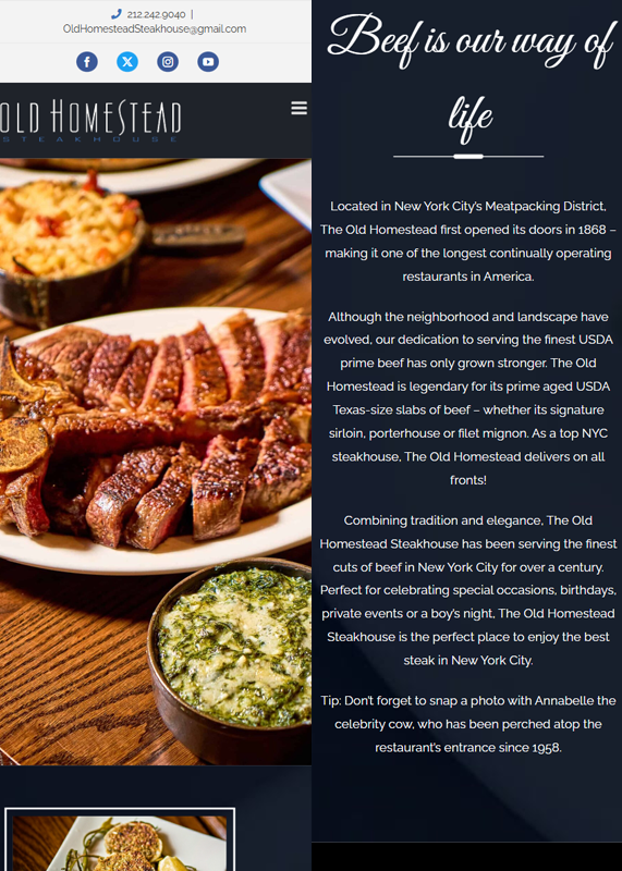 The tablet view looks really elegant and classy. The high-quality food photography instantly grabs attention and perfectly highlights the premium feel of the brand. The overall navigation and layout feel polished, giving off a professional and timeless steakhouse vibe.