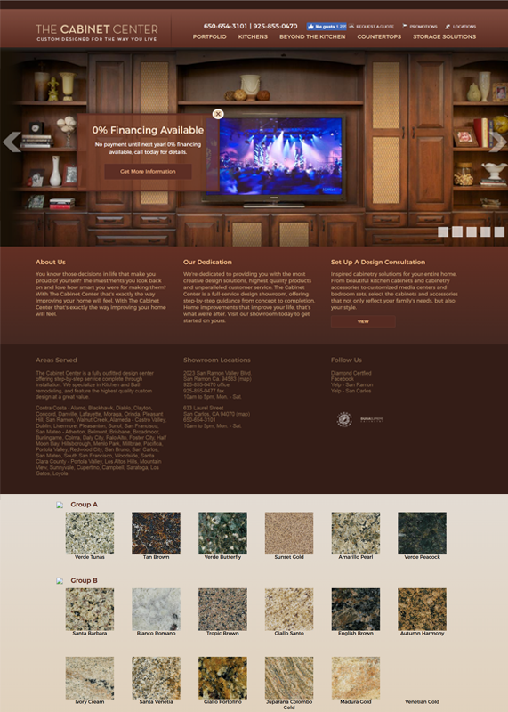 The desktop design feels outdated due to the dark brown-heavy layout, which reduces visual clarity and makes the interface look dull. The content blocks are tightly packed with minimal spacing, causing sections to blend together instead of guiding the user’s attention. Navigation elements and calls-to-action do not stand out, making the page less intuitive. Additionally, the stone samples at the bottom appear small and static, offering limited engagement and not matching modern design standards.